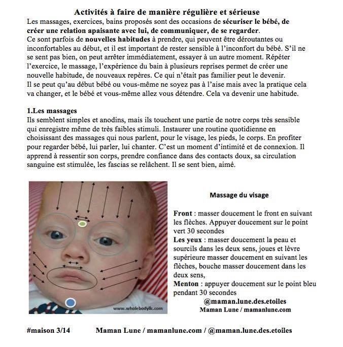Les massages du visage sont importants, d’une part pour commencer les exercices avec bébé et le prévenir que l’on va ensuite aller dans sa bouche, mais pas seulement.